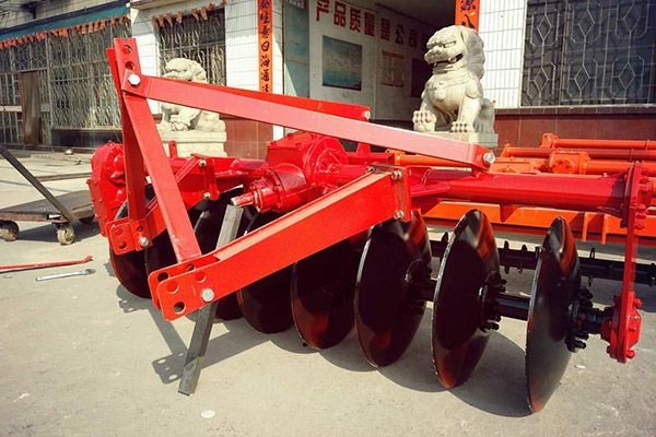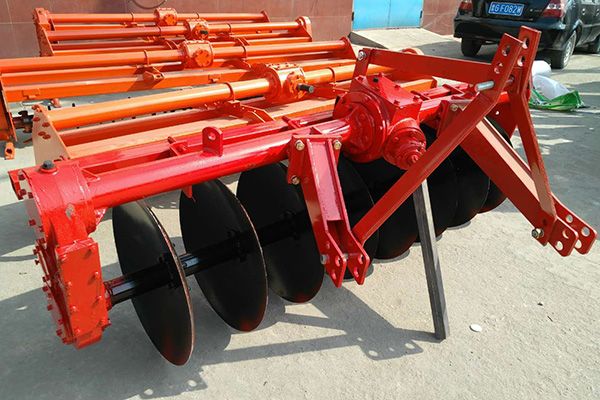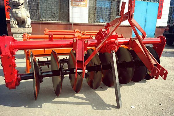 驅(qū)動(dòng)圓盤(pán)犁采用拖拉機(jī)后三點(diǎn)懸掛機(jī)構(gòu)進(jìn)行掛接,機(jī)具在工作過(guò)程中通過(guò)拖拉機(jī)后動(dòng)力輸出軸(PTO)將動(dòng)力傳遞到圓盤(pán)犁齒輪箱中,來(lái)驅(qū)動(dòng)圓盤(pán)犁進(jìn)行旋轉(zhuǎn)。該驅(qū)動(dòng)圓盤(pán)犁主要適用于水田耕作,具有不纏草,作業(yè)質(zhì)量高,工作效率高的特點(diǎn)。